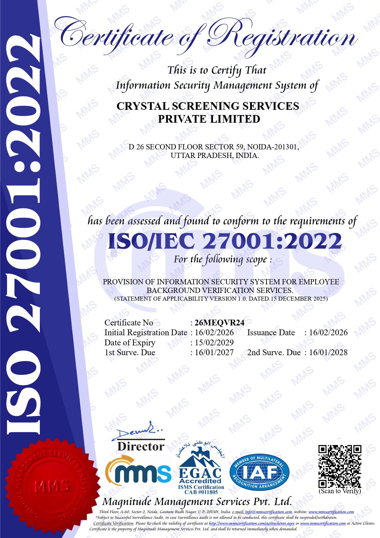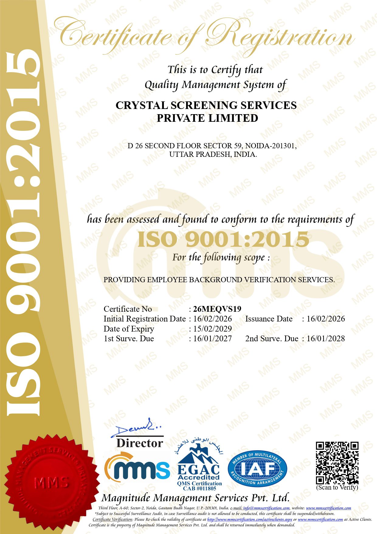 Founded in 2011, Crystal Screening Services has emerged as the world’s leading background verification organization, with a presence across India and internationally. Our corporate headquarters are located in Delhi/NCR.